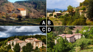Saurez-vous retrouver le faux hameau ? La fausse image est la C. Elle a été créée par une intelligence artificielle en lui demandant de générer