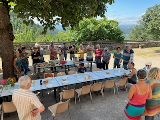 Le 15 juillet c’était « La Marmite partagée » organisée par la Passerelle des Vallées et sa cuisine ambulante. Sylvia avait prévu le repas à base de ses légumes autour d’une délicieuse bombine cuisinée dans les règles de l’art. Le repas, préparé ensemble, a réuni une quarantaine de personnes dans la cour de la mairie.